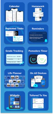 Student Planner & Organizer: Effortlessly manage your class schedule, homework, exams & more with reminders and a Pomodoro timer to stay focused.