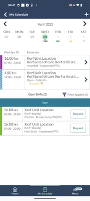• Request open shifts and trade.